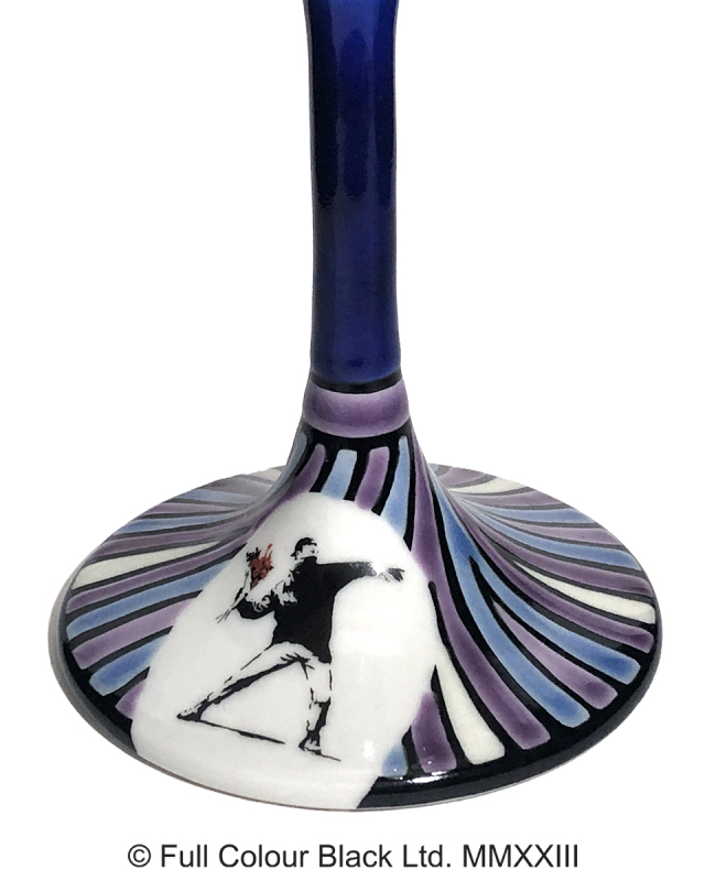 バンクシー作品の中でも特に有名な作品のひとつ「Flower Bomber」に、九谷焼作家「糠川孝之氏」の手描きによるステンドグラス風の色絵を合わせた意匠となっています。