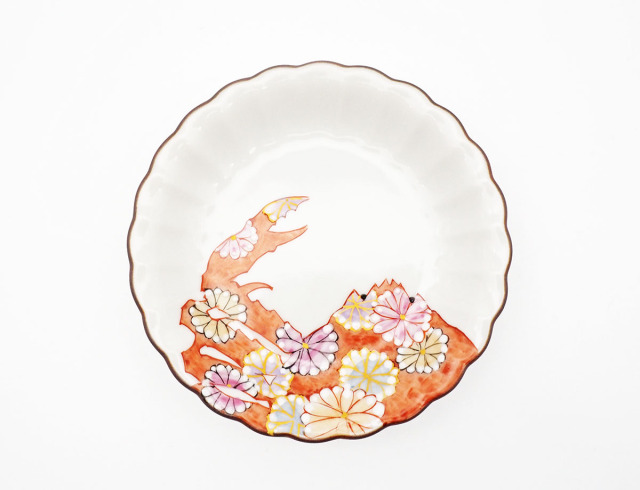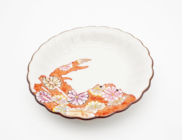 金沢特産品のひとつであるカニにお花を描いたユニークな小皿です。