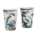 花鳥風月、山水、人物などを大胆な構図で描いたものが多く、青(緑)・黄・赤・紫・紺青の五彩を使った「五彩手」、赤を使わない「青手」、中国・景徳鎮の染付磁器に影響を受けた「祥瑞手」などが有名です。
