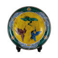 古九谷の「青手」に倣い、赤を用いず、青(緑)・黄・紫・紺青の四彩で描かれるのが特徴です。