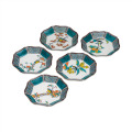 赤・黄・緑・紫・紺青からなる「九谷五彩」の色絵を基本としながら、360年の長い歴史の中で、金襴手・赤絵細描・彩釉・釉裏金彩などの様々な画風が生み出されてきました。