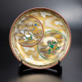 赤・黄・緑・紫・紺青からなる「九谷五彩」の色絵を基本としながら、360年の長い歴史の中で、金襴手・赤絵細描・彩釉・釉裏金彩などの様々な画風が生み出されてきました。