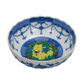 古九谷の「青手」に倣い、赤を用いず、青(緑)・黄・紫・紺青の四彩で描かれるのが特徴です。