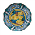 古九谷の「青手」に倣い、赤を用いず、青(緑)・黄・紫・紺青の四彩で描かれるのが特徴です。