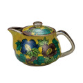 古九谷の「青手」に倣い、赤を用いず、青(緑)・黄・紫・紺青の四彩で描かれるのが特徴です。