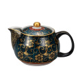 金で描かれた鉄仙文様の隙間を、イッチンと呼ばれる道具を使って青い絵具の粒を落として描かれます。