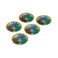 古九谷の「青手」に倣い、赤を用いず、青(緑)・黄・紫・紺青の四彩で描かれるのが特徴です。