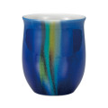 釉彩は、青(緑)・黄・紫・紺青など九谷焼の伝統的な色を使いながらも、色の濃淡やグラデーションのみで表現した様式です。