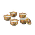 器の表面を四季折々の様々な花で敷き詰め、花の輪郭を金色に描いた意匠が特徴です。