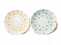 ビタミンカラーで麻の葉を描いた4寸皿です。麻の葉模様は六角形が連続する幾何学的なデザインから、「調和」「円満」を表す吉祥文様として昔から親しまれてきました。