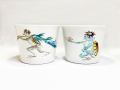 宴の支度でしょうか。嬉しそうに大きな魚を運ぶ河童と、盃を選ぶ河童を描いた楽しいそば猪口です。内側に大好物のキュウリがワンポイントで入っています。