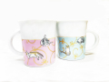 2匹の猫と金のリボンが可愛らしいマグカップです。取っ手の上部にポイントで肉球が描かれています。