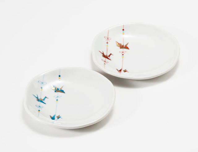 九谷焼の若手職人が制作した折鶴プロジェクト限定のタタラ皿です。