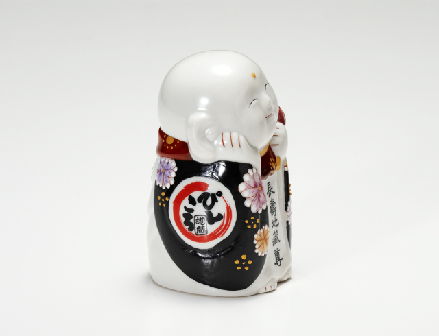 長野県佐久市が発祥のお地蔵様ですが、佐久の管理組合の承諾を得て、皆様の長寿を願ってひとつひとつ手描きで制作した九谷焼です。