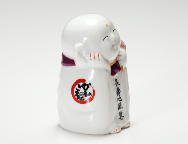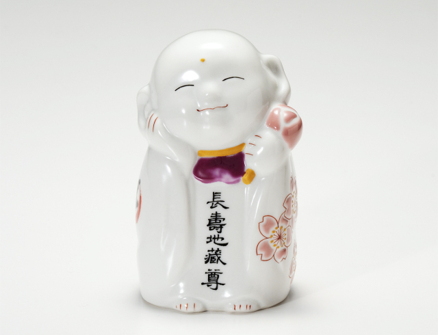 長野県佐久市が発祥のお地蔵様ですが、佐久の管理組合の承諾を得て、皆様の長寿を願ってひとつひとつ手描きで制作した九谷焼です。