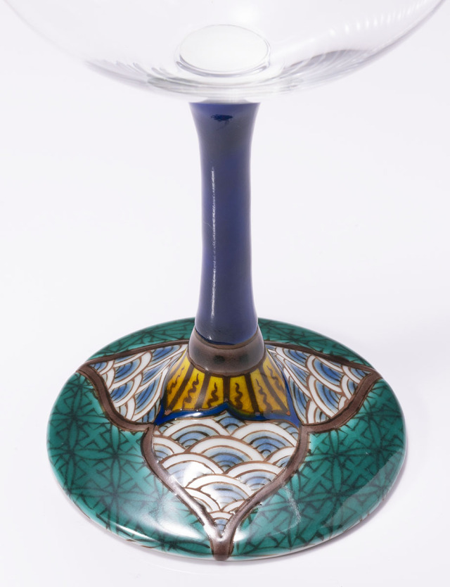 伝統画風を極め、ステンドグラスなど独自の作風も魅力の糠川孝之氏による絵付けのワイングラス。