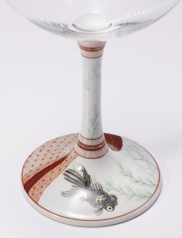 新世代の赤絵細描作家として注目される太田恵利香氏による絵付けのワイングラス。