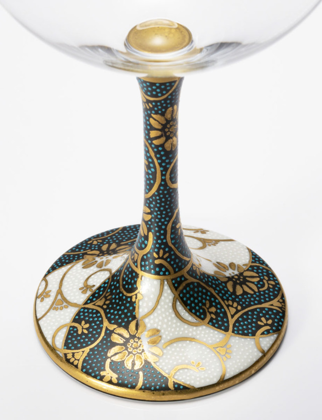 「伝統を活かした現代の絵柄」をコンセプトとしてものづくりをする、大志窯による絵付けのワイングラス。