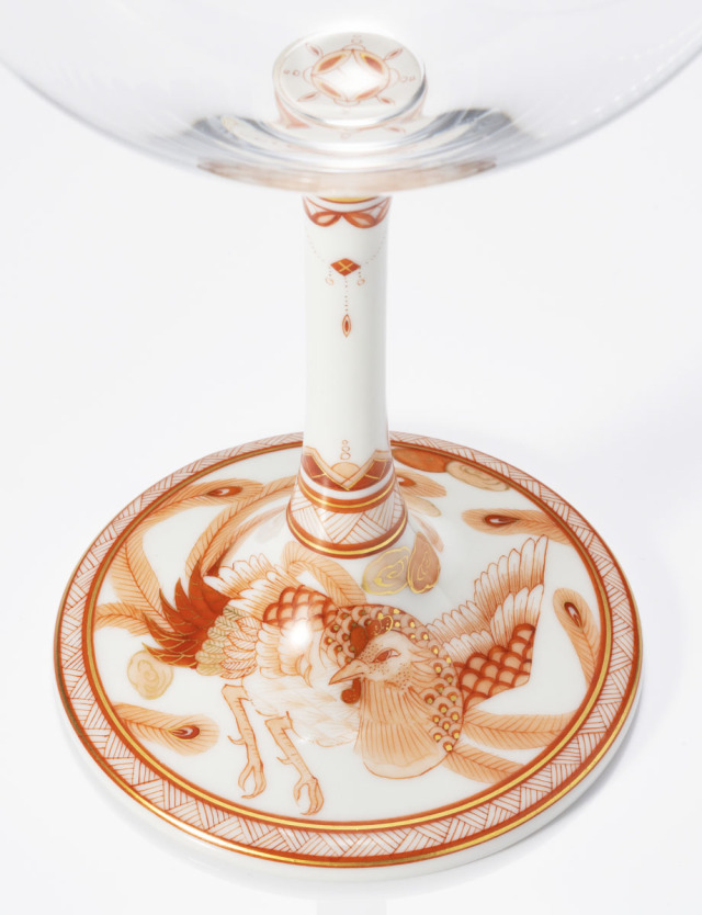 新世代の赤絵細描作家として注目される太田恵利香氏による絵付けのワイングラス。