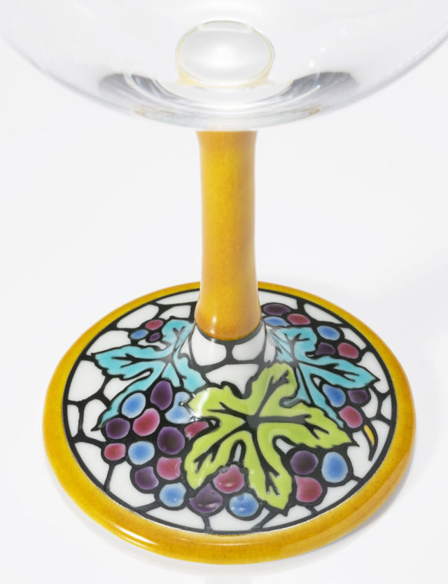 伝統画風を極め、ステンドグラスなど独自の作風も魅力の糠川孝之氏による絵付けのワイングラス。