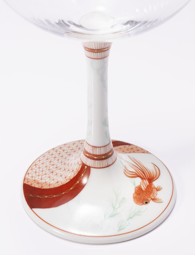 新世代の赤絵細描作家として注目される太田恵利香氏による絵付けのワイングラス。