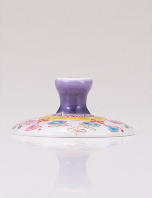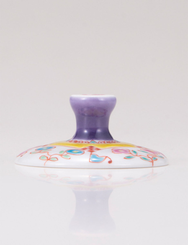 脚部分のデザインは九谷焼の名工と謳われた初代文吉の色絵技術を受け継ぎ、明るい色彩、可愛らしい上絵付で人気の銀舟さんです。