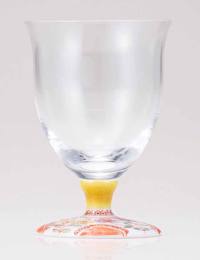 九谷焼と手作り吹き硝子を融合して完成した「九谷和グラス」のフリーグラス小です。小ぶりで上品なサイズなので、おもてなしのグラスに最適です。