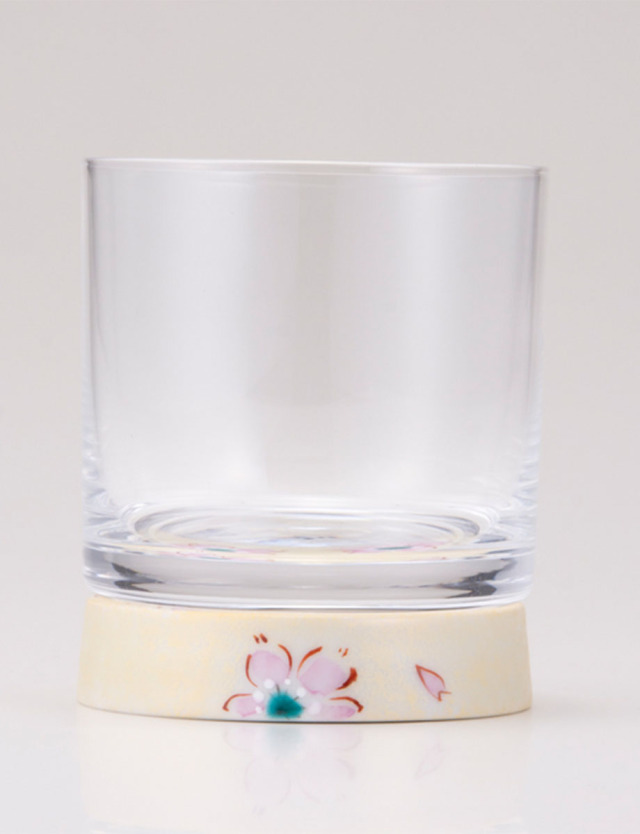 九谷焼と手作り吹き硝子を融合して完成した「九谷和グラス」のロックグラスです。重厚感と高級感が感じられる人気のグラスです。