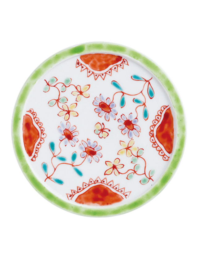 脚部分のデザインは九谷焼の名工と謳われた初代文吉の色絵技術を受け継ぎ、明るい色彩、可愛らしい上絵付で人気の銀舟さんです。