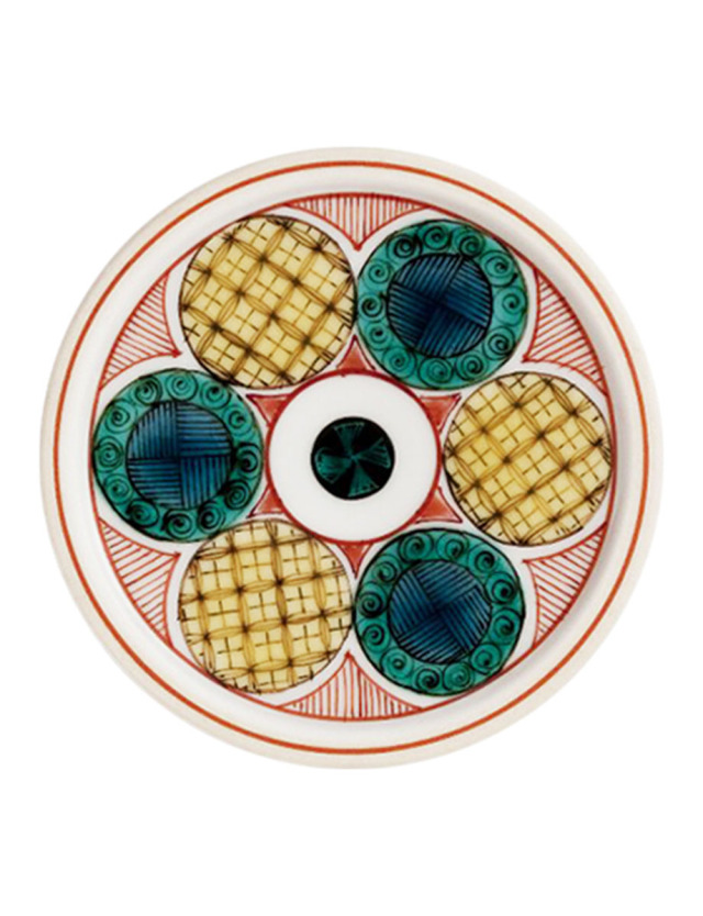 脚部分のデザインは、360年前の九谷焼創始の古九谷を現代風に再現した古九谷文様です。