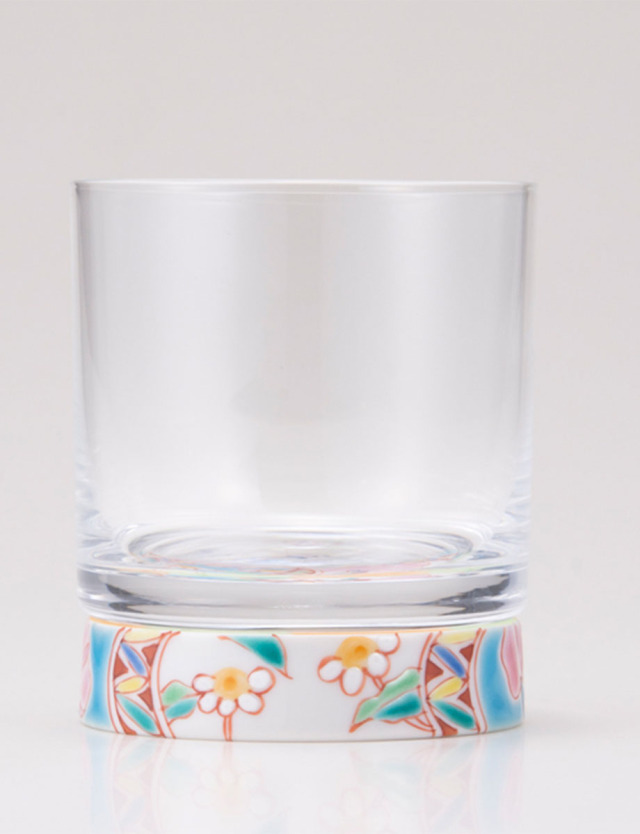 九谷焼と手作り吹き硝子を融合して完成した「九谷和グラス」のロックグラスです。重厚感と高級感が感じられる人気のグラスです。