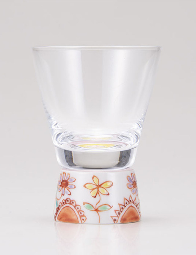 九谷焼と手作り吹き硝子を融合して完成した「九谷和グラス」のショットグラスです。とっておきのお酒とともにお楽しみください。