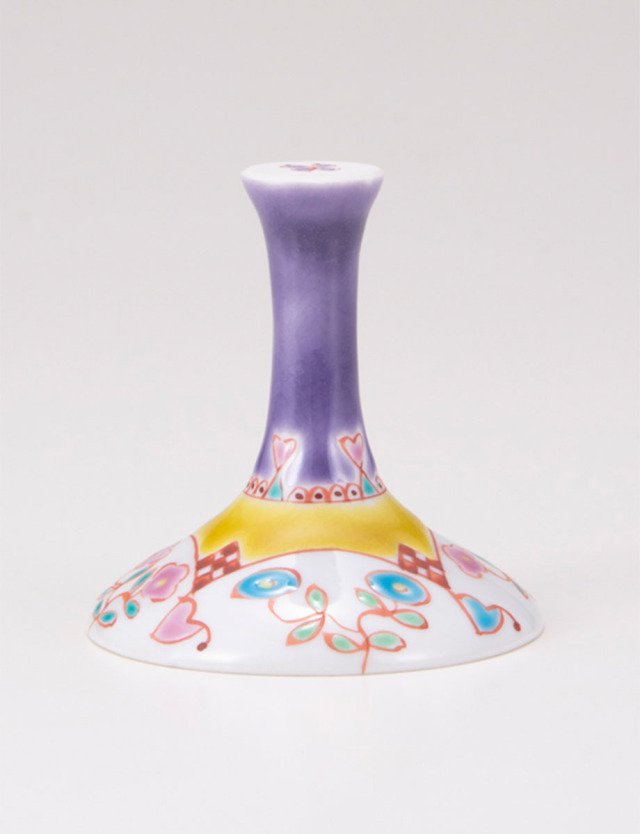 脚部分のデザインは九谷焼の名工と謳われた初代文吉の色絵技術を受け継ぎ、明るい色彩、可愛らしい上絵付で人気の銀舟さんです。