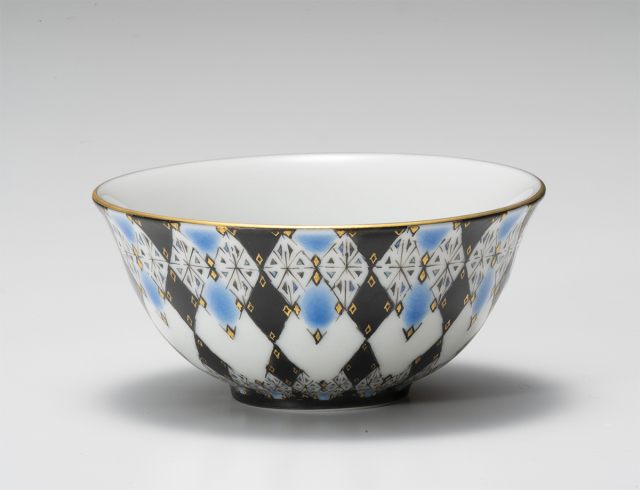 抽象的な創作紋様を得意とする作家、多田幸史氏による絵付の酒盃。