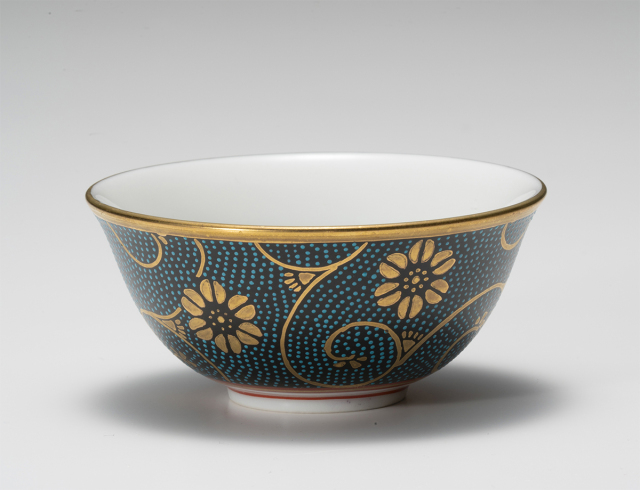 当初は小紋の代わりに使われる脇役の技法でしたが、徐々に青粒をメインとした画風が流行するようになり、九谷の伝統画風のひとつとなりました。