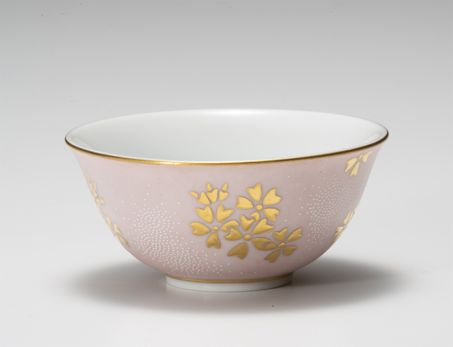 九谷焼の伝統画風「青粒」の名手、三代・仲田錦玉氏による絵付けの盃。