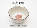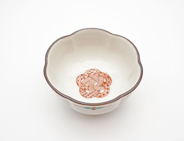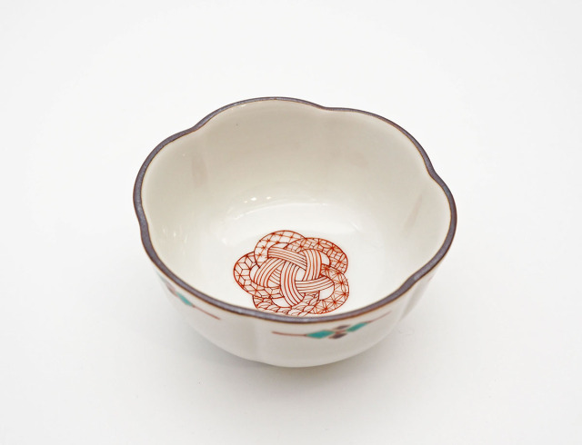 「梅結び」の水引紋が描かれた小鉢です。「梅結び」には、複雑な結び方をすることから「固い絆」という意味合いがあります。また、古くから魔除けの縁起物とされていた梅をモチーフにしていることから、無病息災を願う意味もあります。