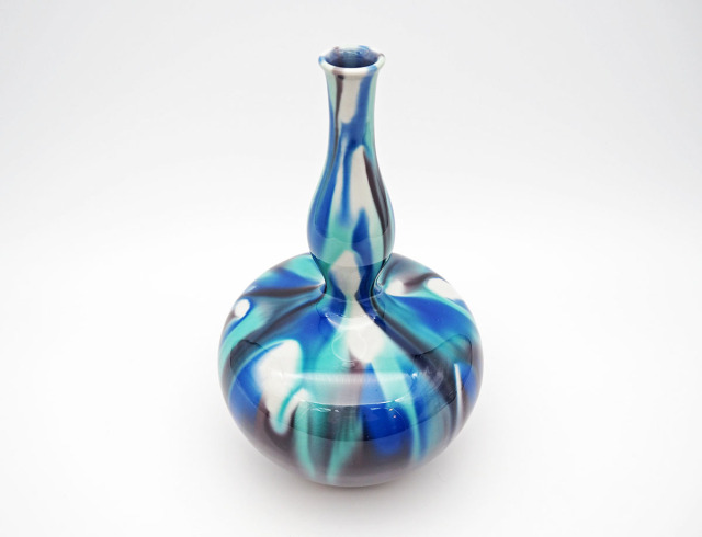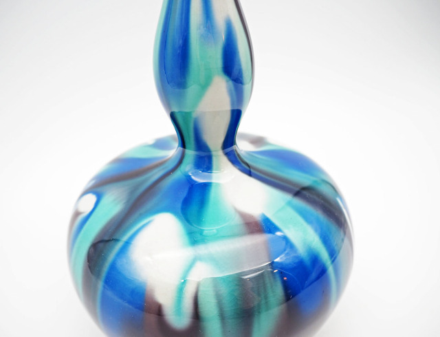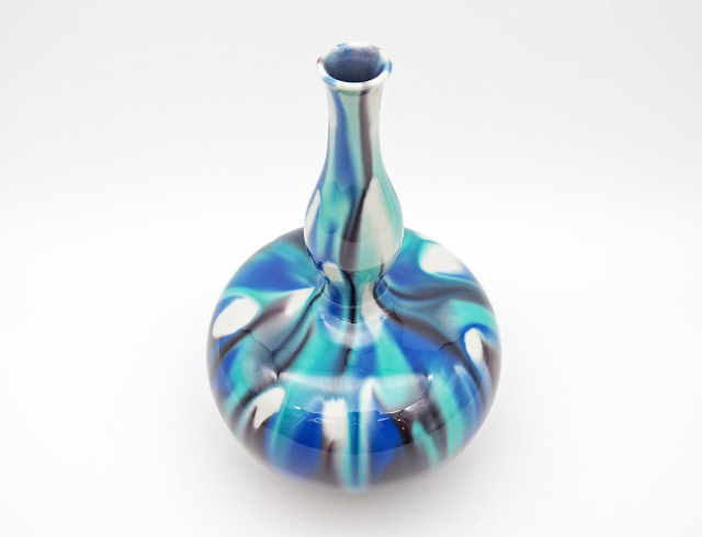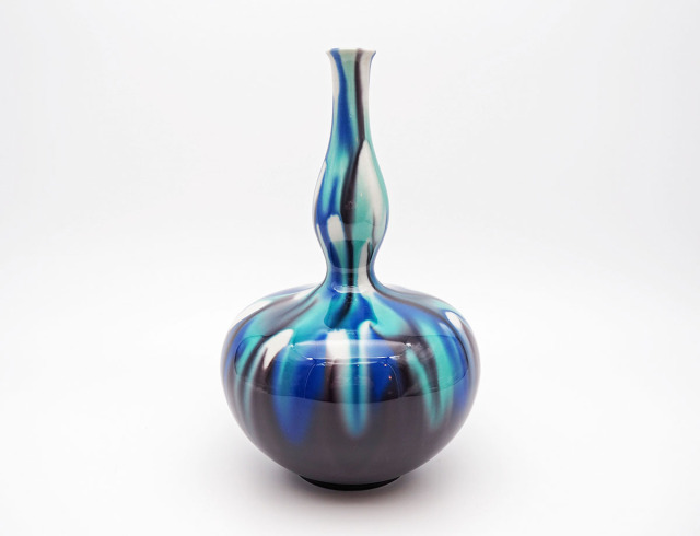 こちらは三代・徳田八十吉氏の花瓶です。大胆な青のグラデーションと曲線美が魅力の逸品です。